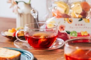 また、味わいの「深み」も大きな特徴です。こだわりのフルーツハーブティーは、飲み進めるごとにドライフルーツから濃厚な旨味と甘みが溶け出し、カップの中で味わいが変化していきます。最後には柔らかくなった果実そのものをデザート感覚で味わえるタイプも多く、「飲む」だけでなく「食べる」楽しみも兼ね備えているのが魅力です。